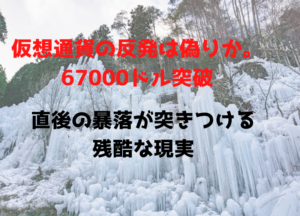一瞬の夢で終わるのかと疑いたくなるほど、ビットコインが67000ドルから急落し上昇分をわずか数時間で消失させた事実は市場に大きな衝撃を与えています。