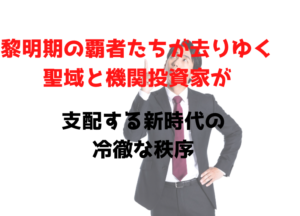 黎明期の覇者たちが去りゆく聖域と機関投資家が支配する新時代の冷徹な秩序は、かつての神話的な富が社会全体へと溶け出し、特定の個人の意志に左右されない真の公共財へと進化するプロセスを象徴しています。