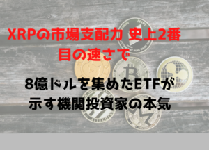 XRP ETFが市場を席巻しているという事実は、XRPを対象とした上場投資信託(ETF)が、設定からわずか13取引日で8億ドル(約1240億円)という巨額の資産を集めたことを示しており、このアセットクラスに対する機関投資家と一般投資家の両方からの極めて強い需要を裏付けています。